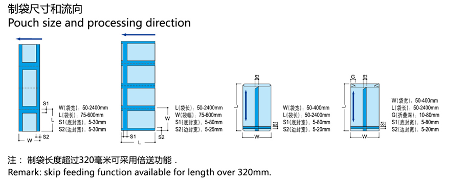 9、工作方式:定長制袋,光電跟蹤制袋。