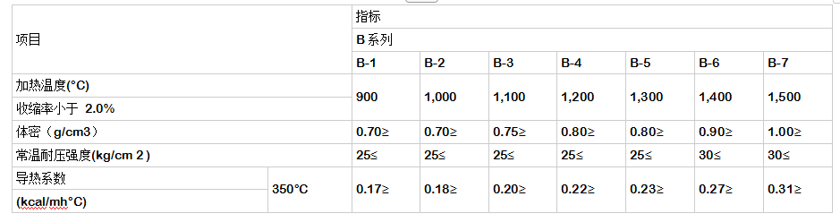 出口B系列輕質(zhì)隔熱保溫耐火磚理化指標(biāo)