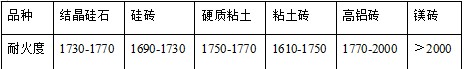 耐火度可以作為選用耐火材料時(shí)綜合評價(jià)判斷的一個(gè)參考數(shù)據(jù)。原料的耐火度測定可以判斷原料的雜質(zhì)成分與含量。常見耐火原料及耐火制品的耐火度指標(biāo)為: